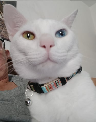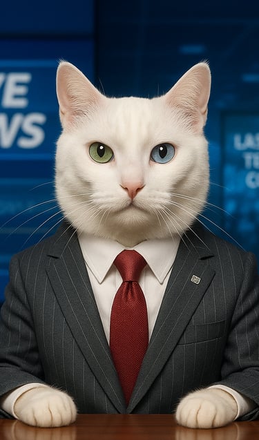 Casanova Mitchell is the distinguished lead anchor for Whiskers News, bringing feline sophistication to breaking stories across the nation. With his striking white coat and mismatched eyes—one azure blue, one emerald green—this Turkish Angora commands attention both on and off camera.